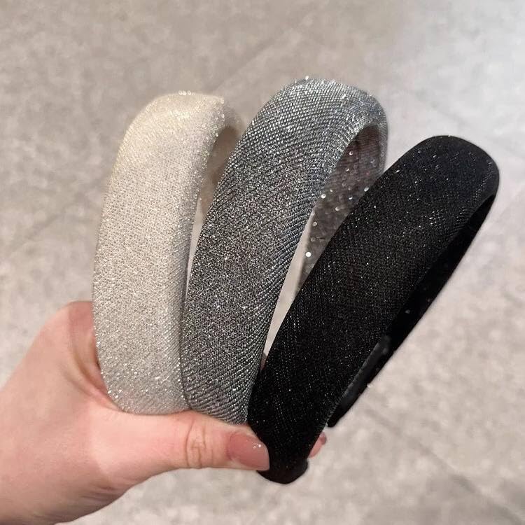 Generic - أربطة رأس لامعة عريضة ومبطنة أنيقة للنساء، رباطات شعر سميكة لامعة للحفلات والارتداء اليومي والهدايا