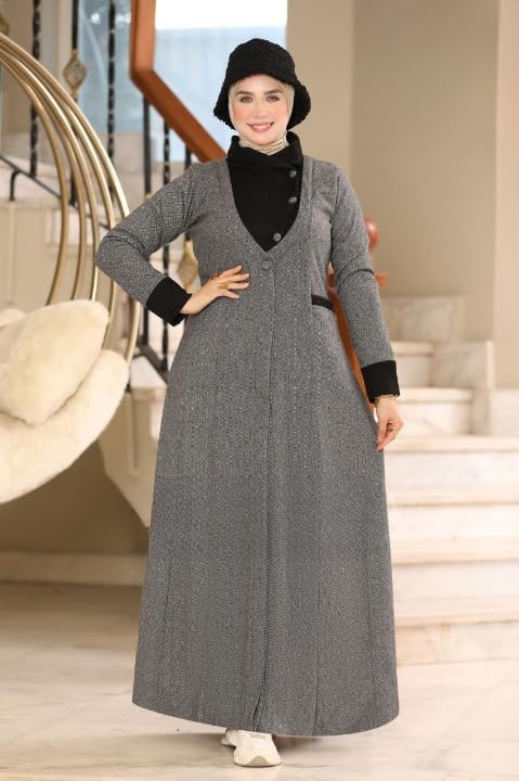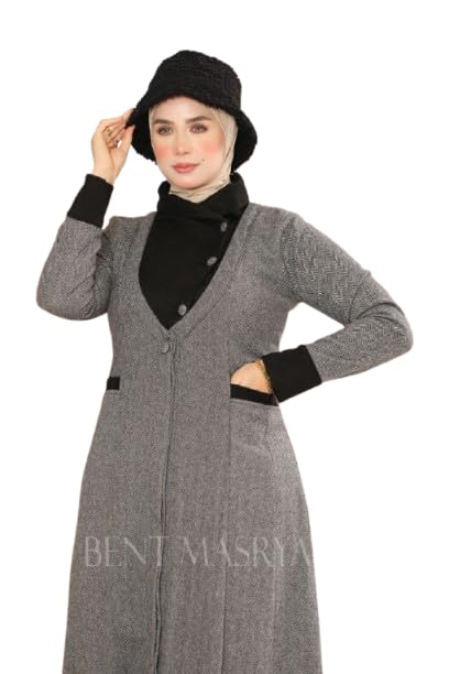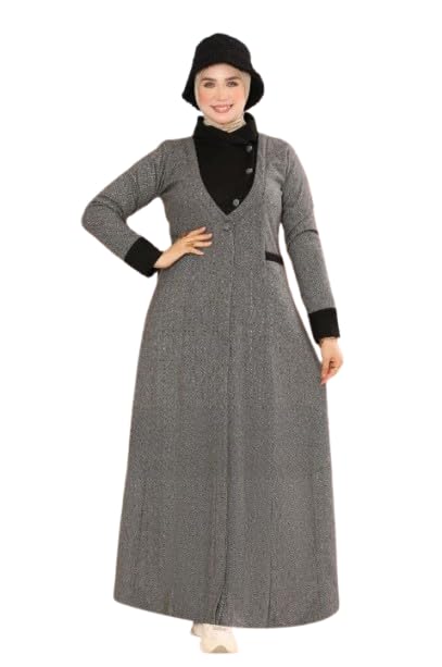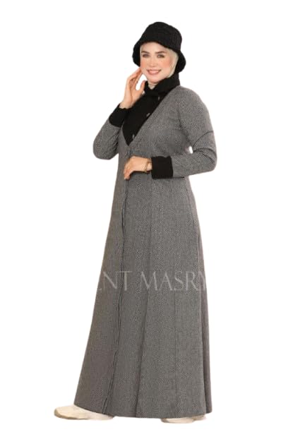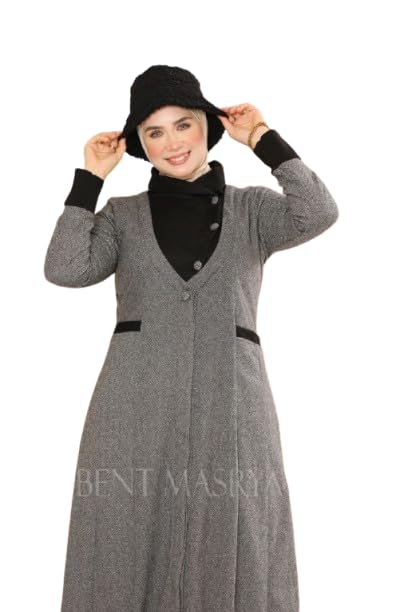 Generic - فستان صوف تويد شتوي أنيق للمحجبات – خامة تويد مستوردة ناعمة ومريحة – تصميم محتشم عصري بمقاسات M إلى XXL