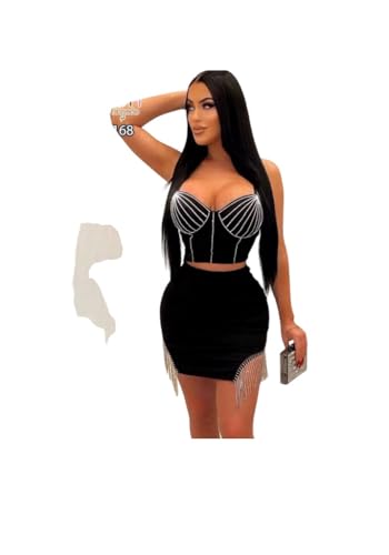 Generic - طقم نسائي انيق مكون من قطعتين توب قصير بحمالات مع تنورة ضيقة عالية الخصر-مقاس واحد