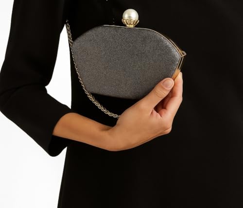 حقيبة سهرة نسائية أنيقة مع سلسلة ذهبية وزخرفة لؤلؤية - مثالية للمناسبات والحفلات