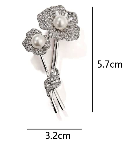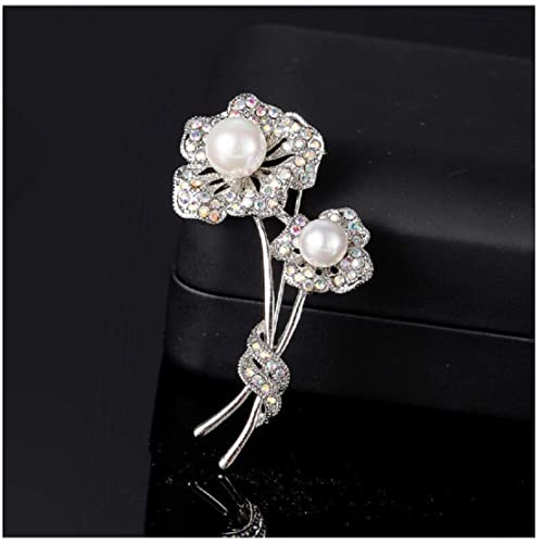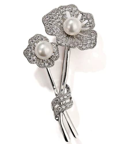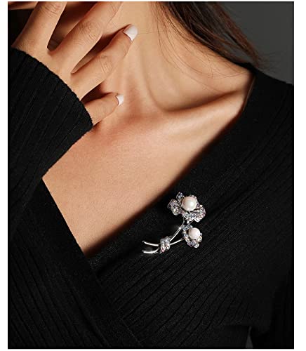 Generic - بروش نسائي وردي لؤلؤ أبيض طبيعي نقي, لؤلؤ طبيعي
