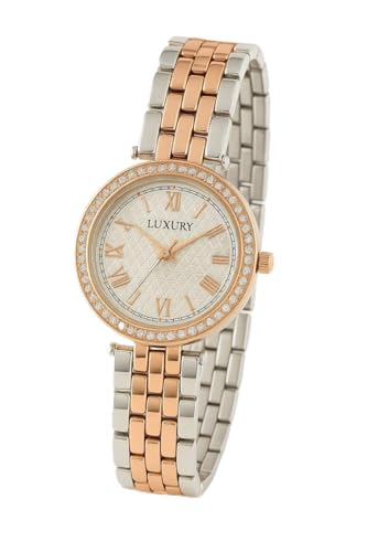 Generic - ساعة يد نسائية أنيقة، إطار فضي مرصع بالكريستال، سوار معدني مزدوج اللون، مينا كلاسيكية، ٣,٥ سم