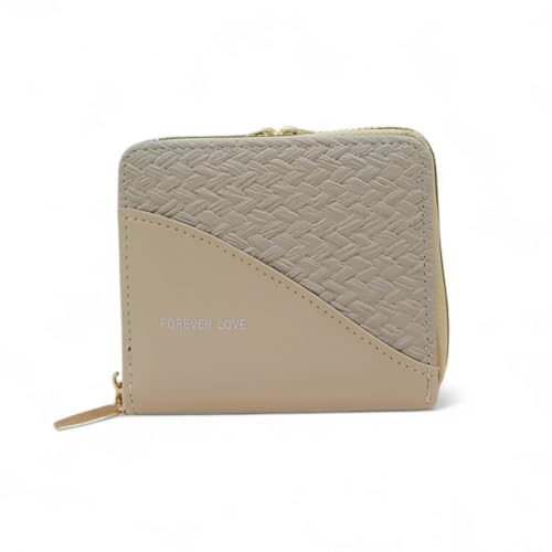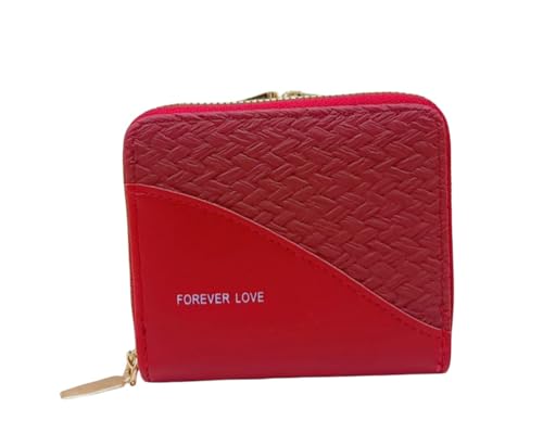 Generic - محفظة نسائية أنيقة مع نقش محبوك، جلد صناعي، متوفرة بثلاثة ألوان (أحمر، بيج، كحلي)، سحاب ذهبي، تصميم عصري