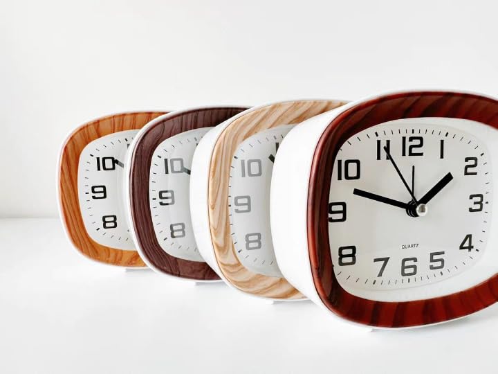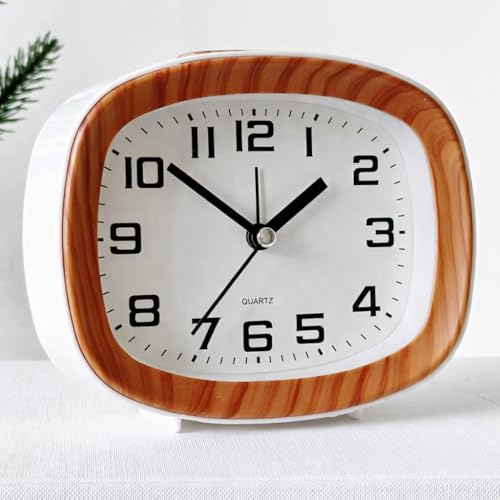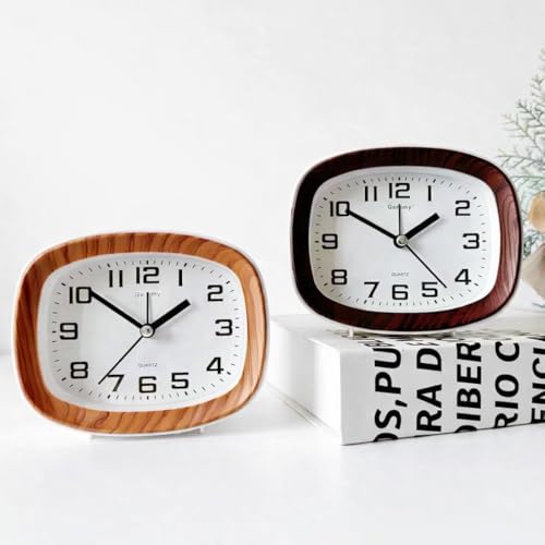 Generic - منبه مكتب كوارتز بتصميم خشبي أنيق | ساعة منبه بعقارب وصوت واضح | منبه نوم لغرف النوم والمكاتب | حجم صغير وعرض واضح (بني)