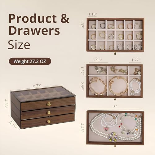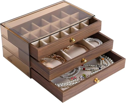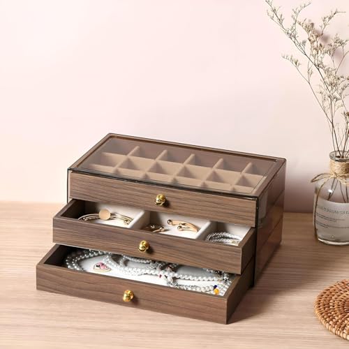 Generic - علبة مجوهرات خشبية انيقة - تخزين من 3 طبقات مع غطاء زجاجي - هدية للنساء (شكل 1)