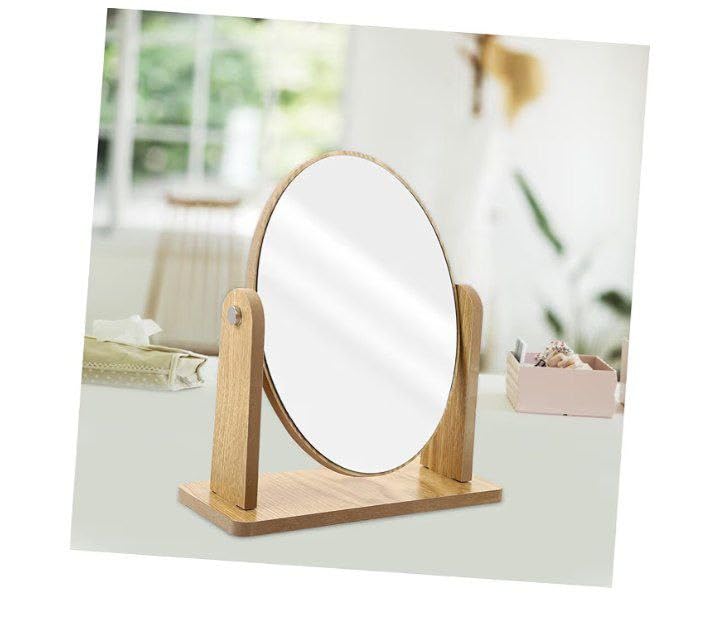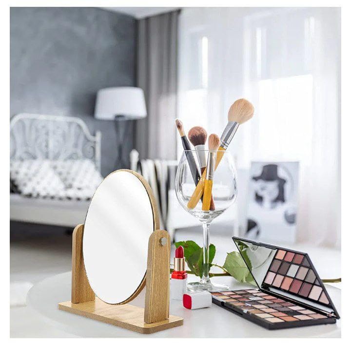 Generic - مراة خشبية بيضاوية انيقة 25 × 21.5 سم - مراة فانيتي دوارة بوجهين مع وجوه مكبرة وعادية، مثالية للعناية الشخصية والمكياج والعناية بالبشرة والمنزل والمكتب والهدايا (قطعة واحدة)