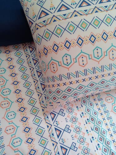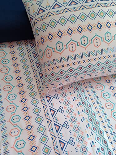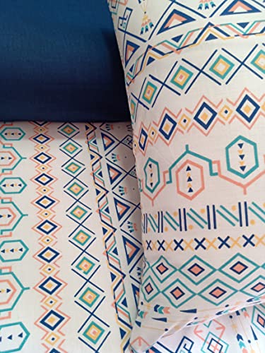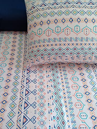Generic - طقم سرير مقلم شبابي راقي - 4 قطع ملايه ومخده و2 خُدديه- قماش العامرية، متعدد، هندسي