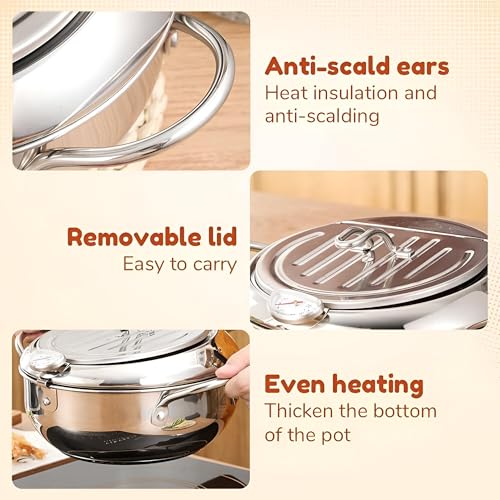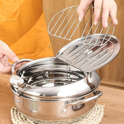 Generic - مقلاة عميقة 2.2 لتر بتصميم انيق من الستانلس ستيل مع ميزان حرارة دقيق - اداة اساسية لكل طاهي منزلي.