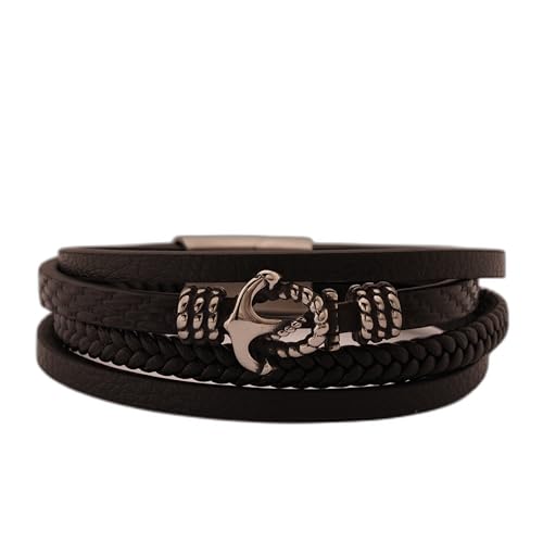 Generic - سوار جلد اسود متعدد الخيوط للرجال من اليجنت بير مع مشبك مرساة معدني