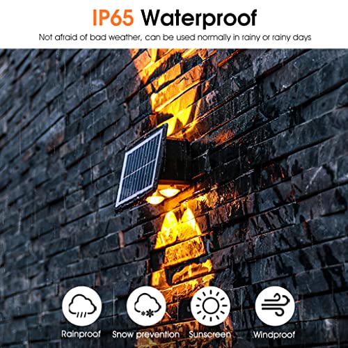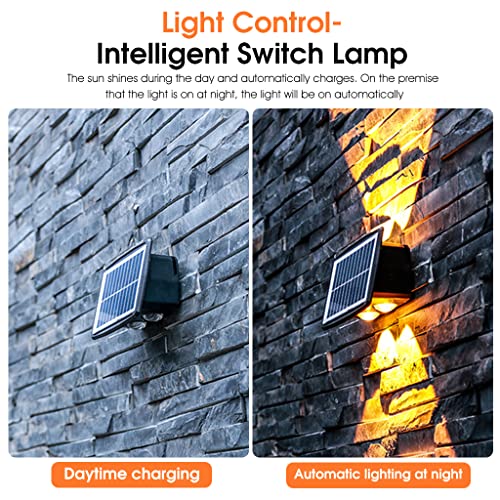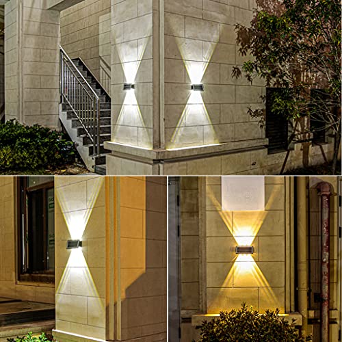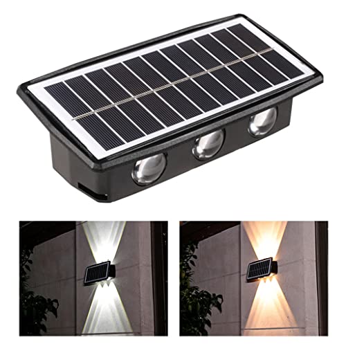 - مصباح حائط يعمل بالطاقة الشمسية لأعلى لأسفل: تصميم إضاءة مزدوج الصف، مجهز بـ 6 خرزات إضاءة LED محدبة توفر تأثير إضاءة فريد على الحائط، مصباح حائط LED يعمل بالطاقة الشمسية عملية وجميلة. ضوء أبيض ودافئ، لونين قابلين للتبديل يخلق جوًا مختلفًا.
