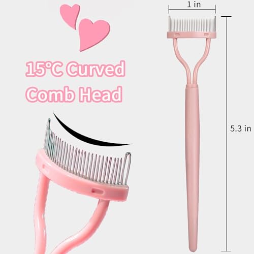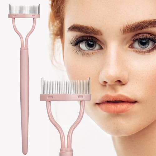 ELESDA - مشط رموش من اليسدا - أداة فصل الرموش بأسنان معدنية - مشط للرموش - فرشاة رموش وحواجب - مشط للماسكارا بتصميم منحني - مشط رموش للرموش، لون وردي