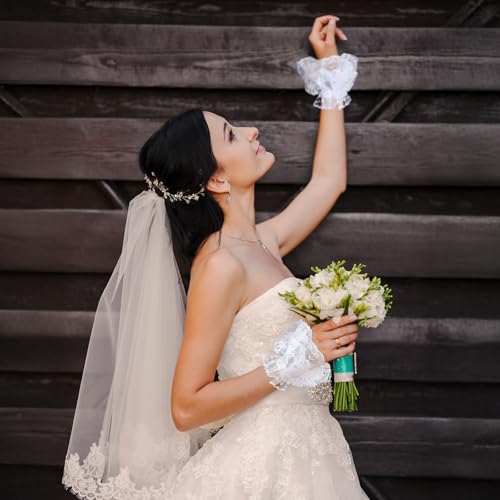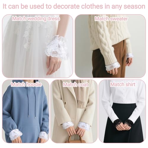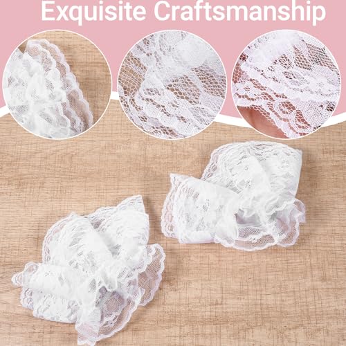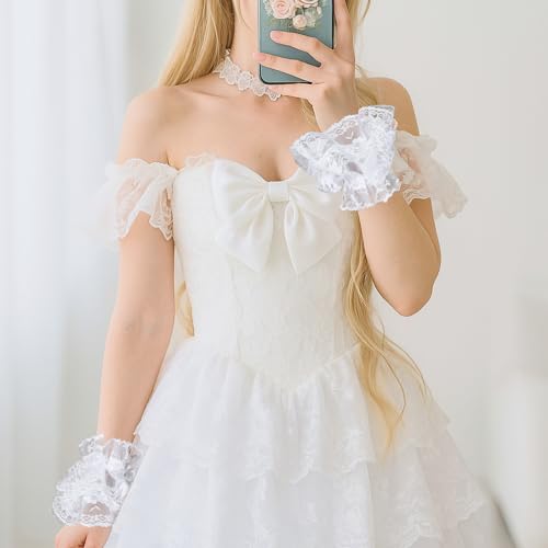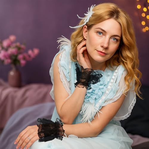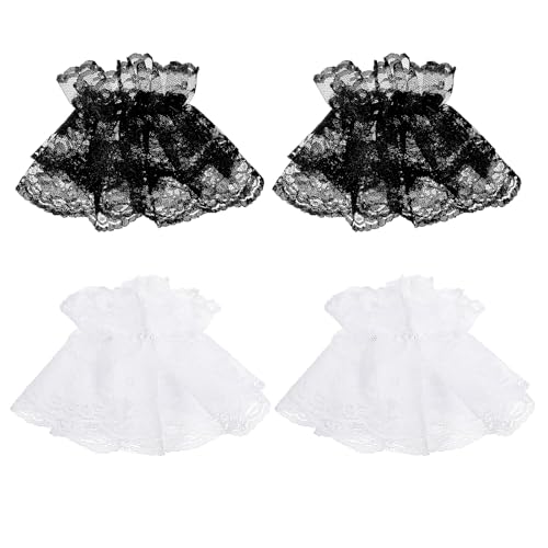 ElevateTech - أكمام معصم دانتيل شبكية لوليتا للنساء مع سوار مطاطي، جوانتي دانتيل بدون أصابع بتصميم كلاسيك عتيقة لحفلات الزفاف أو حفلات الشاي والتنكر من اليفيت تيك - أبيض وأسود