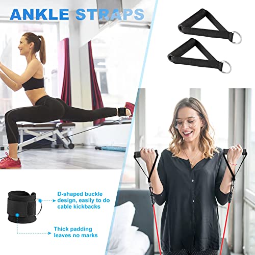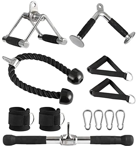 Elevens - ملحقات جهاز الكابل للتمارين الرياضية المنزلية من اليفينز، 7 قطع متعددة الخيارات، مقبض على شكل حرف V مع دوران، قضيب مستقيم دوار، قضيب على شكل حرف V، أحزمة كاحل، لجهاز تمارين عضلة الترايسيبس
