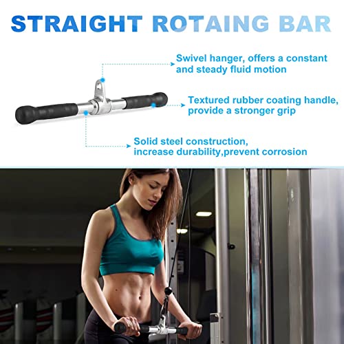 - 【قضيب دوار مستقيم】يتميز القضيب المستقيم الخاص بنا بهيكل من الستيل الصلب مع لمسة نهائية مصقولة بالكروم ومقابض مزخرفة لسهولة الإمساك. مناسبة لأداء السحب لأسفل والضغط على ثلاثية الرؤوس والصفوف المستقيمة وتجعيد القضيب المستقيم والصفوف الجالسة، بالإضافة إلى المزيد لتطوير عضلات ثلاثية الرؤوس والعضلة ذات الرأسين والظهر والكتف وتقبض عضلات البطن وتحسين قوة قبضة العضلة ثلاثية الرؤوس. سعة الوزن: حتى 1200 باوند.