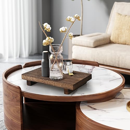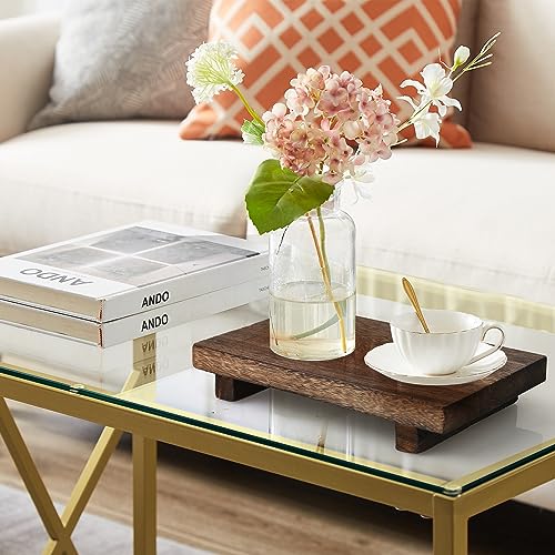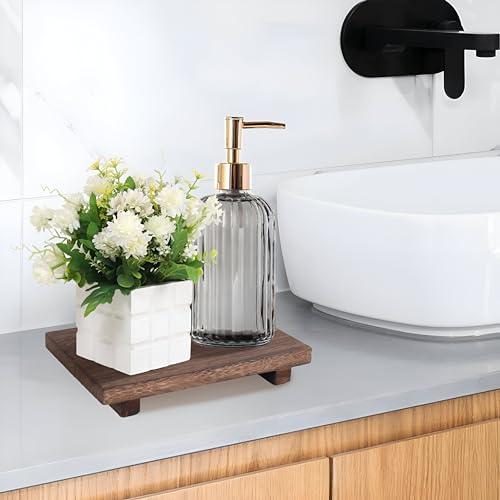 ElfBello - حامل عرض خشبي، حامل صابون بقاعدة خشبية، صينية صابون لطاولة المطبخ والحمام وديكور المنزل، حامل خشبي مزخرف لمنزل المزرعة لعرض الشموع والنباتات والزجاجات من الفبيلو، بني