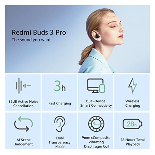 ELICNA - سماعات أذن بلوتوث ترو لاسلكية بتقنية إلغاء الضوضاء النشطة متوافقة مع ريدمي بادز 3 برو تي دبليو اس من اليكانا، متوافقة مع ريدمي ايردوتس 3 برو