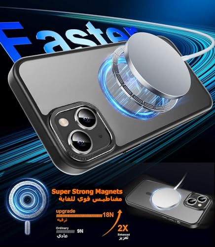 Eligo - جراب حماية مغناطيسي لموبايل آيفون 13 متوافق مع ماج سيف، بتصميم مضاد للصدمات وشفاف غير لامع مع مغناطيس قوي، جراب حماية رفيع لموبايل آبل 13 6.1 بوصة (2021) أسود ايليجو