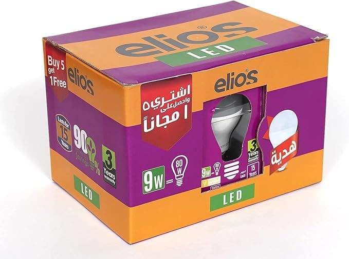 Generic - عبوة عرض ( 5 + 1مجانا ) عدد 6 لمبة ليد 9 وات من اليوس - اصفر دافئ 3000 كلفن - شدة الإضاءة 900 لومن - القاعدة E27 - جسم اللمبة مصنفر - ضمان 4 سنوات - العمر الافتراضي 25000 ساعة، 9.0 واط