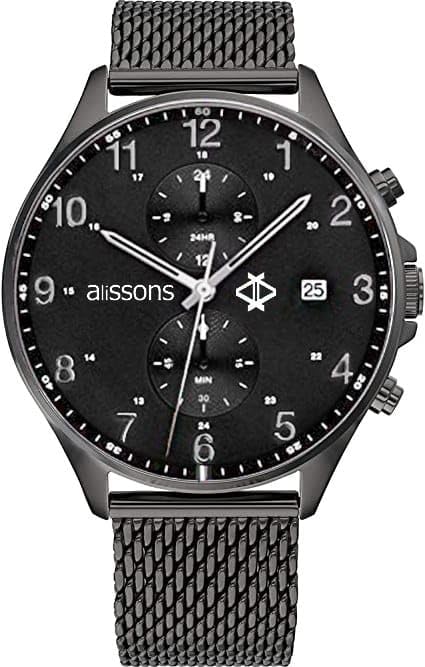 Generic - ساعة اليسونز، كرونوغراف رجالي، سوار شبكي معدني، لون أسود، مع تاريخ