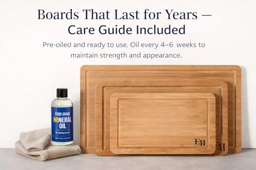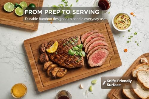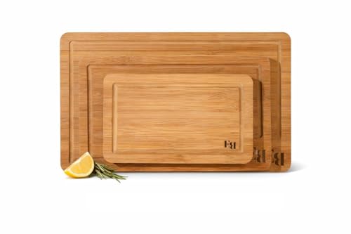 Elite Blacksmith - ألواح تقطيع خشبية لتقديم الطعام في المطبخ وإعداد الوجبات - مجموعة ألواح من خشب البامبو مع مقابض جانبية عميقة للعصائر - لوح تقطيع اللحوم وقطع اللحم من ايليت بلاكسميث كرافت (3 قطع)
