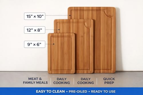 - ثلاثة ألواح تقطيع بمقاس مناسب: يأتي لوح التقطيع المصنوع من البامبو الخاص بنا في مجموعة من 3 قطع، مما يوفر خيارات بمقاسات 15.2 × 22.8 سم، 20.3 × 30.4 سم، 25.4 × 28.1 سم، مما يجعلها ضرورية للمطبخ. يتيح لك ذلك إكمال جميع احتياجات التقطيع وإعداد الوجبات والتقديم بسهولة. هناك خيار لكل حاجة: يمكن استخدام الحجم الصغير لتقطيع الفاكهة بسرعة، ويوفر الوسط مساحة أكبر للعديد من الخضروات، وأخيرًا، يمكن استخدام الحجم الكبير لتقطيع وتقطيع اللحوم المختلفة أو العجين أو حتى استخدامه كلوح تقديم المقبلات.