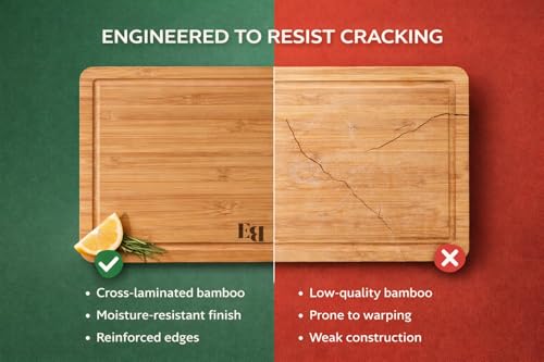 - سطح آمن للسكين: خشب البامبو الناعم الخاص بنا لطيف على شفرات السكاكين، مما يمنعها من البهتان بسرعة، لذلك لن يكون لديك مهمة مطبخ إضافية لشحذ السكاكين. ألواح التقطيع سهلة ومريحة في الاستخدام للقطع والتقطيع لشرائح. يساعد الطلاء العلوي بالورنيش المصنوع من الراتنج حول الخشب على منع الندوب والخدوش والبقع وغيرها من علامات التآكل المرئية.