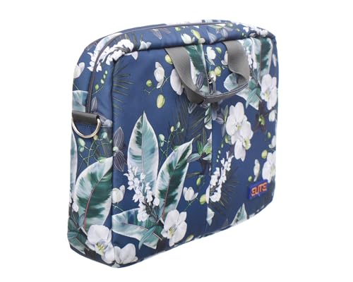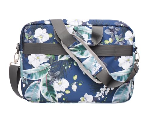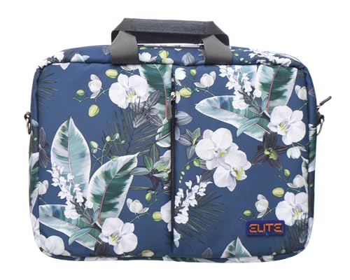 Generic - شنطة حمل من القماش تحتوي على جيب رئيسي وأمامي بسوستة بتصميم أزهار مطبوع وحزام كتف مجهز متوافقة مع أجهزة اللاب توب المختلفة مقاس 15.6 بوصة من ايليت - متعددة الألوان
