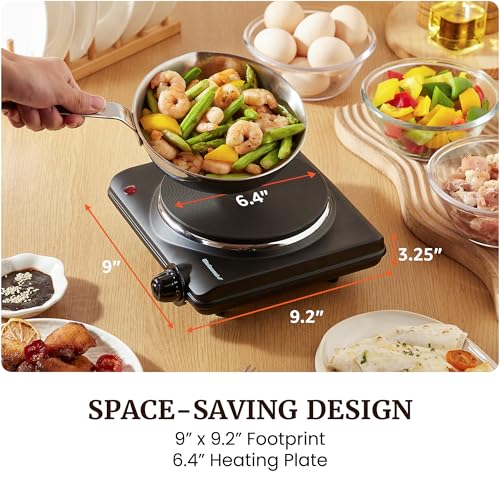 - طاقة فعّالة – بقدرة 1000 وات، يوفر الموقد ولوحة الطهي مع التحكم الفردي في درجة الحرارة حرارة كافية لجميع احتياجاتك الطهوية.