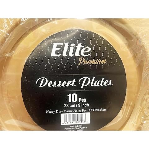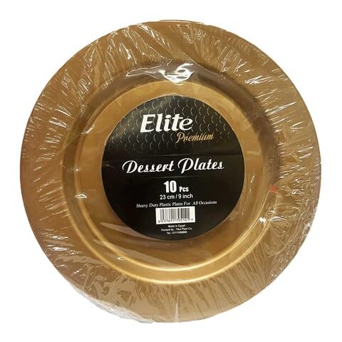 Generic - طبق عشاء بلاستيكي للاستعمال مرة واحدة، أطباق عشاء شديدة التحمل، أطباق صلبة أنيقة للحفلات وحفلات الزفاف والتموين من ايليت، عبوات من 10 قطع ذهبية، 23 سم