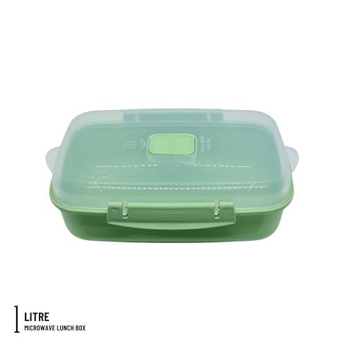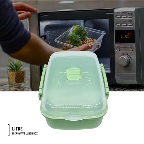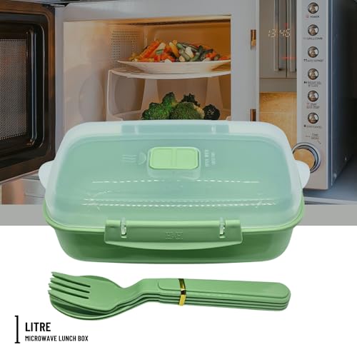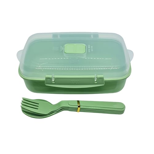 Elite - لانش بوكس آمن للاستخدام في الميكروويف مع ملعقتين وشوكتين من اليت (أخضر تفاحي)