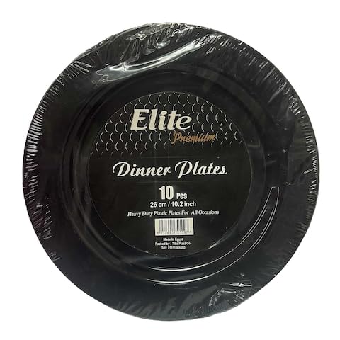 Generic - 10 أطباق بلاستيكية "سوداء" شديدة التحمل مقاس 23 سم من ايليت، أطباق حلوى أنيقة قابلة لإعادة الاستخدام متعددة الاستخدامات للغداء والعشاء للحفلات وحفلات الزفاف والمناسبات