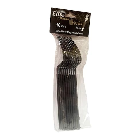 LC - شوك بلاستيك للاستعمال مرة واحدة لأدوات المائدة شديدة التحمل ومثالية للحفلات والمطاعم من ايليت (لون أسود، 30 قطعة)