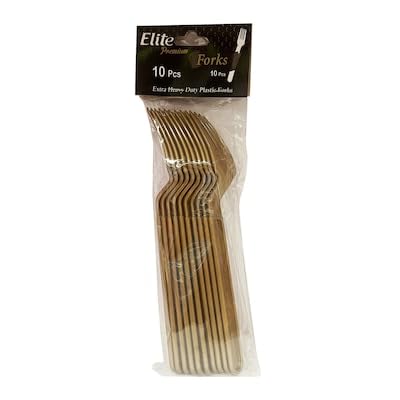 Generic - شوكة بلاستيك ايليت ثقيلة الاستخدام، أدوات مائدة ذهب متينة للاستخدام مرة واحدة مثالية للحفلات والمطاعم، حجم كبير، لون ذهبي (عبوة من 30 قطعة)