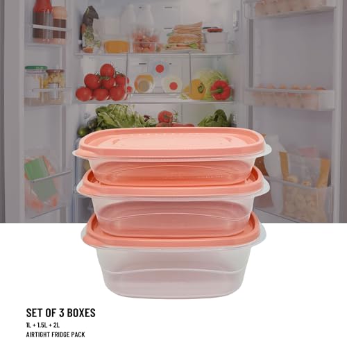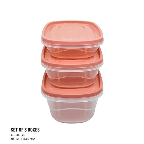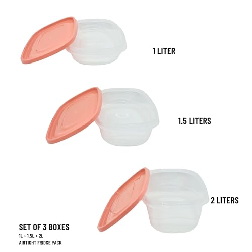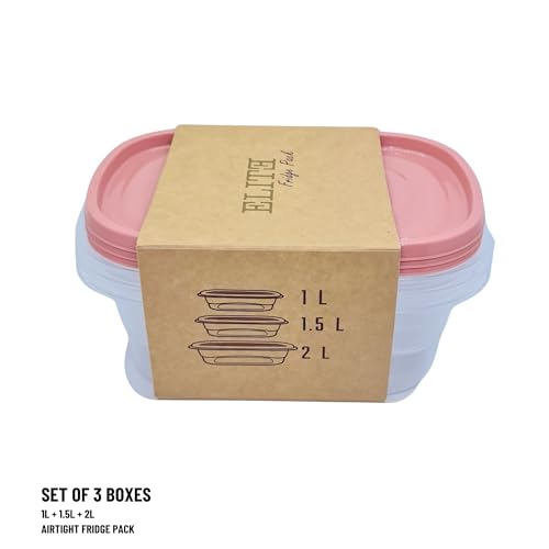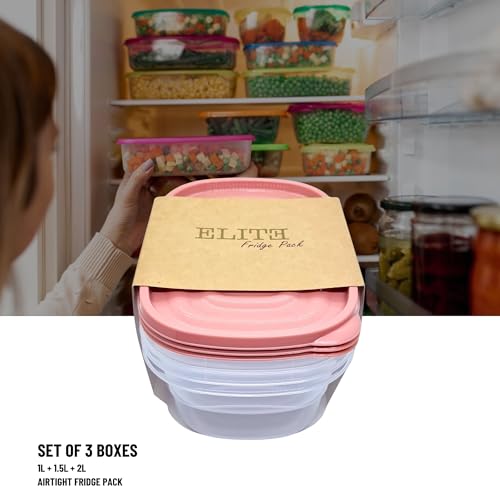 Elite - طقم ثلاجة شفاف من اليت علب للطعام الساخن والبارد بأحجام مختلفة 1 لتر- 1.5 2 لتر 3 قطع غطاء سومون