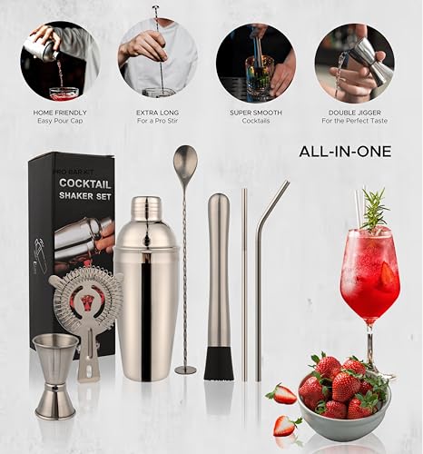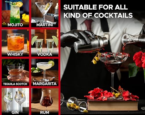 ELITE SPORTIVE - طقم خلط المشروبات كوكتيل شيكر لفن خلط وتحضير الكوكتيلات من ايليت سبورتيف، مستلزمات البار من الفولاذ المقاوم للصدأ، مثالي لخلط المشروبات في المنزل أو البار أو الحفلات، 8 قطع