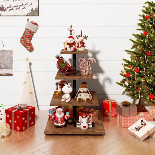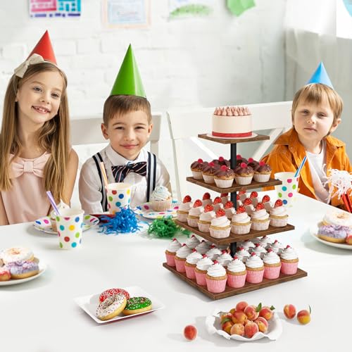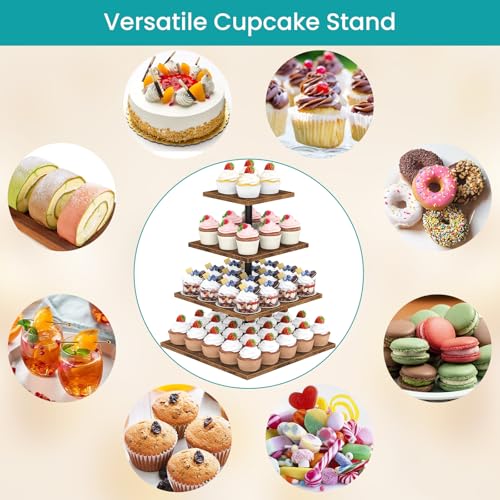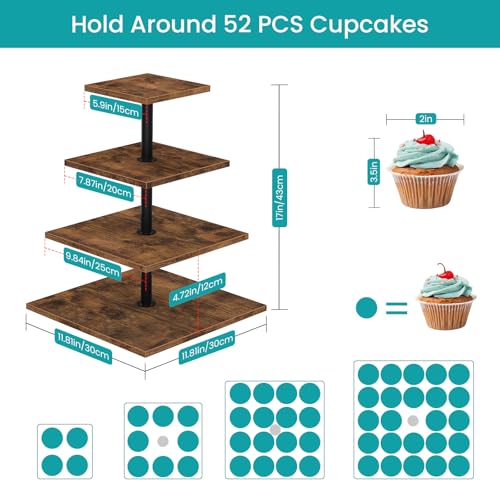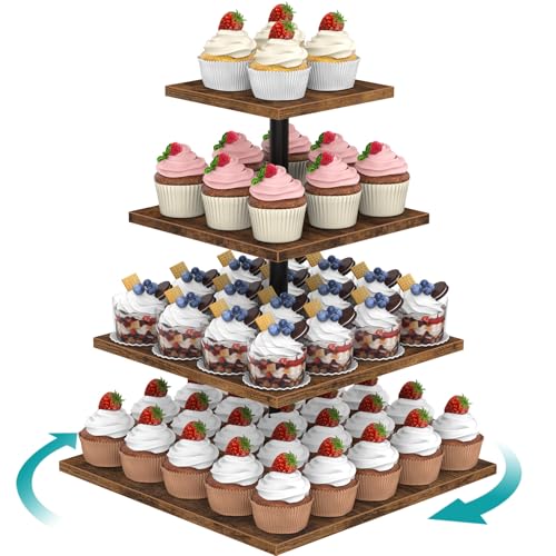 ELITEROO - حامل كب كيك خشب بشكل مربع من 4 طبقات - حامل كب كيك دوار 360 درجة يحمل حتى 50 كب كيك من ايليترو - لعرض الحلوى لحفلات الزفاف والتخرج وأعياد الميلاد وحفلات استقبال المولود الجديد