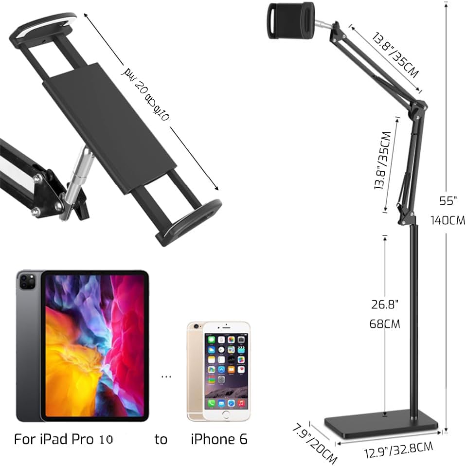 Generic - حامل أرضي للتابلت قابل للتعديل زاوية قابلة للطي وقابلة من أجل وضع الوقوف شامل مع متوافق ايباد برو واير وميني سامسونج تاب لحد 10 بوصه شنطه قماش لحمل كل الاغراض المعداوي ستورز