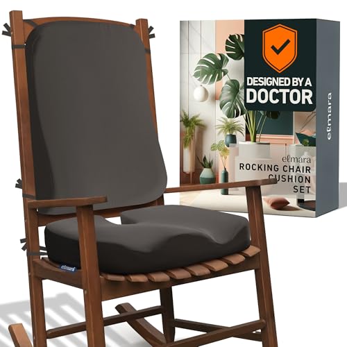 Elmara - مجموعة مخدات كرسي هزاز مريحة للغاية وغير قابلة للانزلاق مصنوعة من الميموري فوم بسماكة 10 سم متينة للاستخدام في الأماكن الداخلية والخارجية من ايلمارا، بني