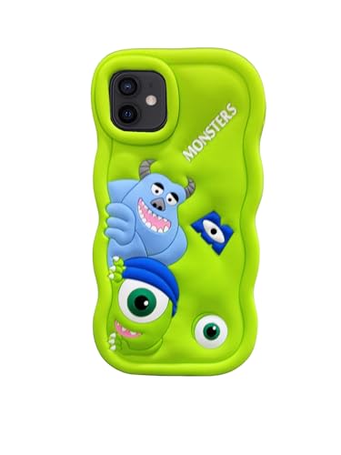 ELMO3EZZ - جراب سيليكون ببطانة من المايكروفايبر بأشكال جميلة ثلاثية الأبعاد لموبايل ابل ايفون 11 المعز كرتون شركة المرعبين المحدودة أخضر