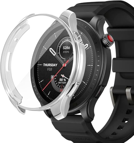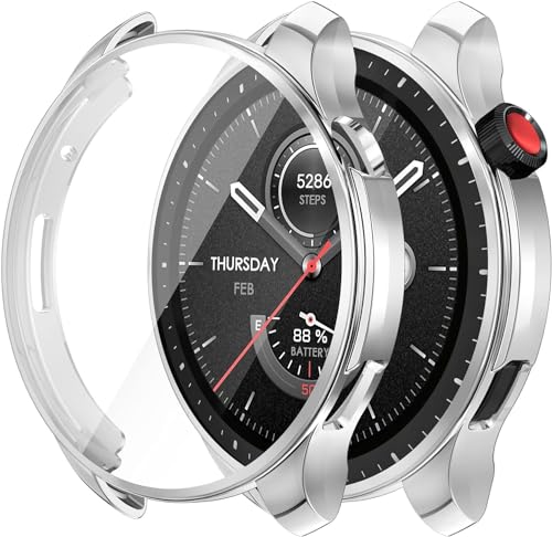 ELMO3EZZ - جراب حماية كاملة متوافق مع امازفيت GTR 4 ناعم ورفيع جدا ومضاد للخدش من البولي يوريثين الحراري من المعز، مجموعة من قطعتين، فضي