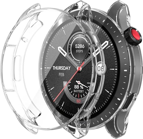ELMO3EZZ - جراب حماية شفاف لساعة امازفيت جي تي ار 4 من الموعز [قطعتين] السيليكون والبولي يوريثين الحراري رفيع للغاية للساعة لساعات ذكية سيليكون بولي حراري DEV