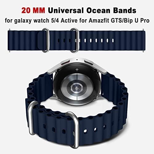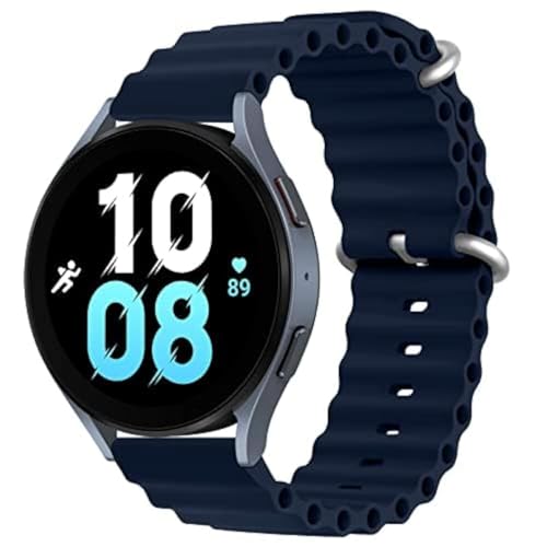 ELMO3EZZ - سوار اوشن 20 ملم من الموعز لساعة سامسونج جالكسي 5 - 4 44 40 ووتش برو 45 - كلاسيك 46 42 - 3 - اكتيف 2 معصم رياضي السيليكون للنساء والرجال ازرق داكن