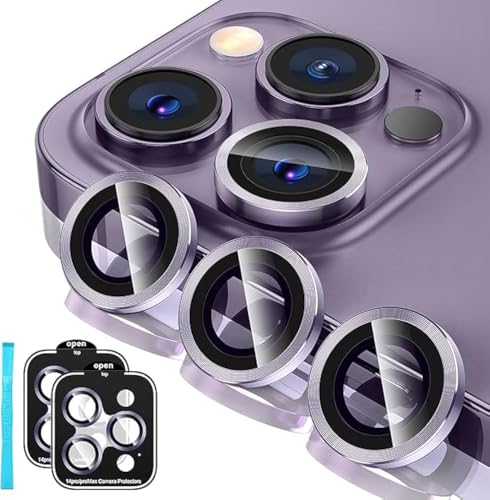 ELMO3EZZ - واقي عدسة كاميرا ايفون 14 برو من المعز - غطاء واقي للكاميرا لايفون 14 برو ماكس مصنوع من زجاج مقوى بدرجة صلابة 9H، حلقة فردية معدنية لايفون 14 برو 6.1 بوصة/ 14 بروماكس 6.7 بوصة 2022 [3 + 3 قطع]