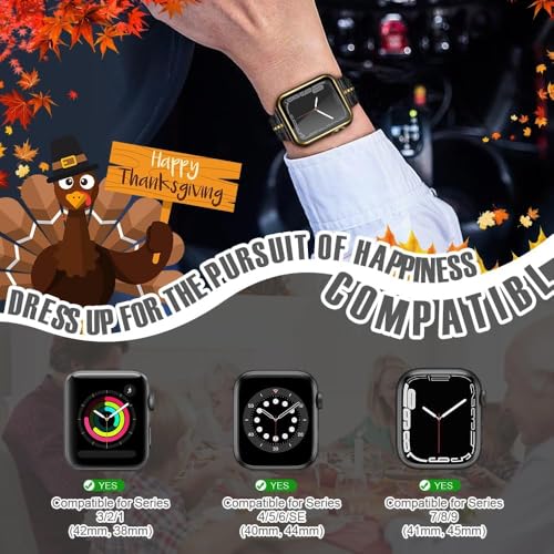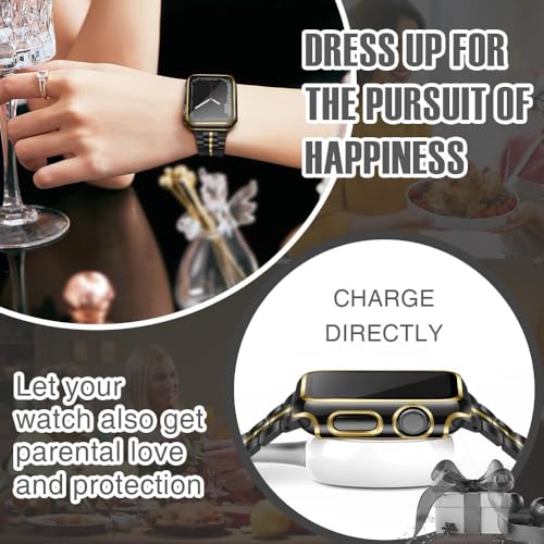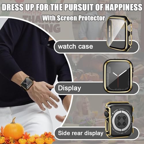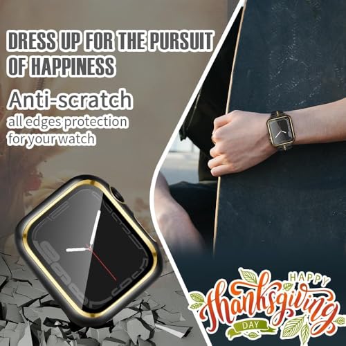 ELMO3EZZ - جراب 44 ملم متوافق مع ساعة ابل شاشة حماية مدمجة من الزجاج المقوى غطاء البولي كربونات لسلسلة اي ووتش 9 - 8 - 7 - SE 2rd 6 5 4 - 3 2 للاختيار بينها اسود + حافة ذهبية .