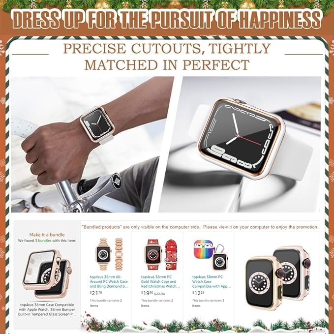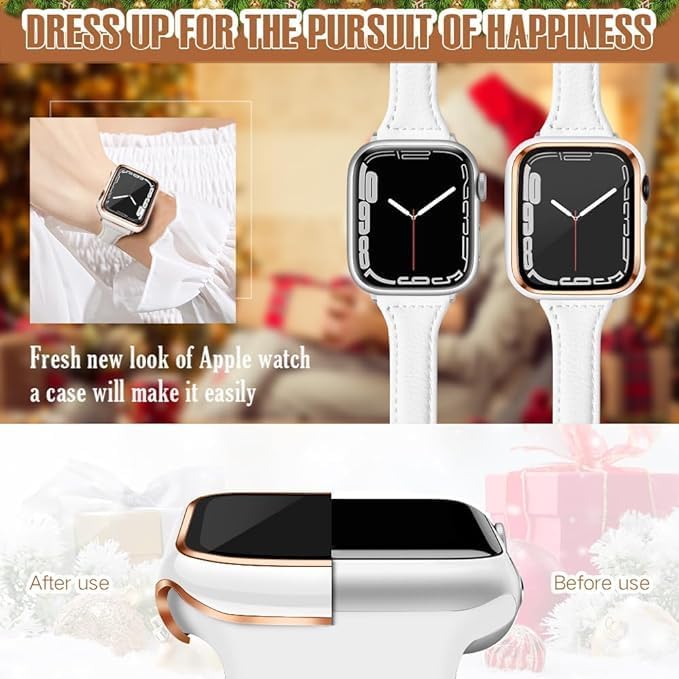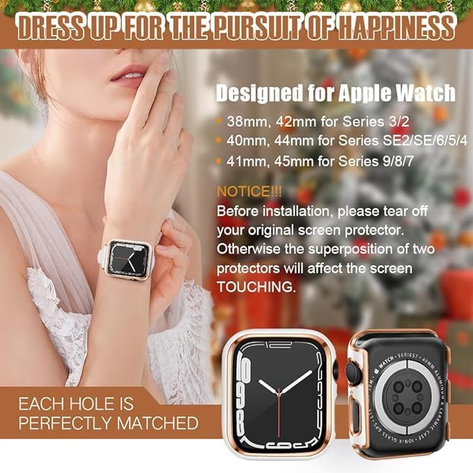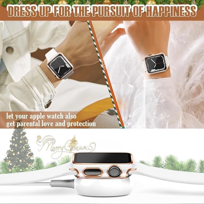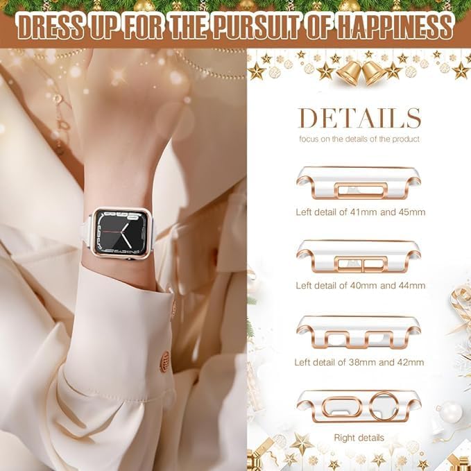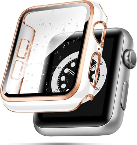 ELMO3EZZ - حافظة 44 ملم متوافقة مع ساعة ابل واقي شاشة مدمجة من الزجاج المقوى غطاء البولي كربونات لسلسلة اي ووتش 9 - 8 - 7 - SE 2rd 6 5 4 - 3 2 للاختيار بينها حافة بيضاء + ذهبي وردي