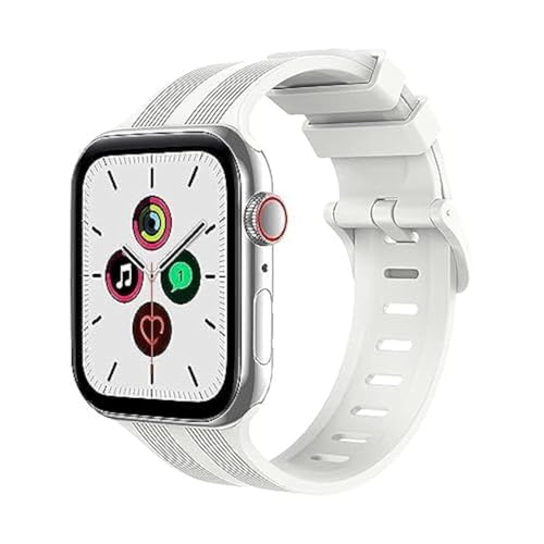 ELMO3EZZ - سوار بديل رياضي مرن وناعم من السيليكون للرجال والنساء متوافق مع ساعات ابل ووتش مقاس 45 ملم و44 و42 سلسلة 7 و6 و5 و4 و3 و2 و1 واس اي أبيض