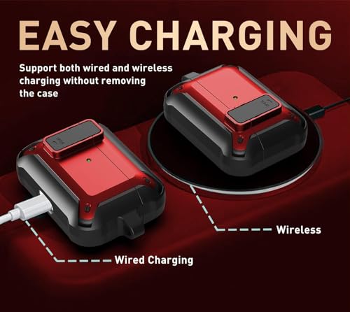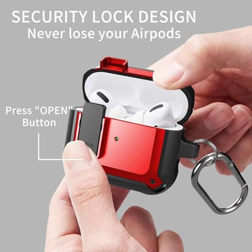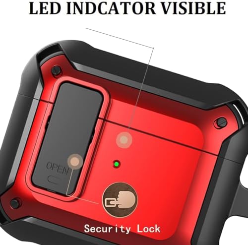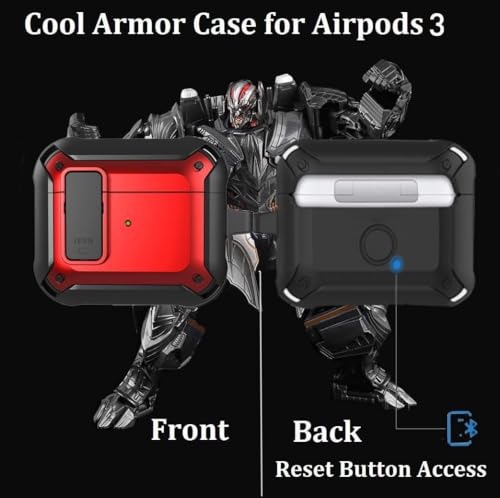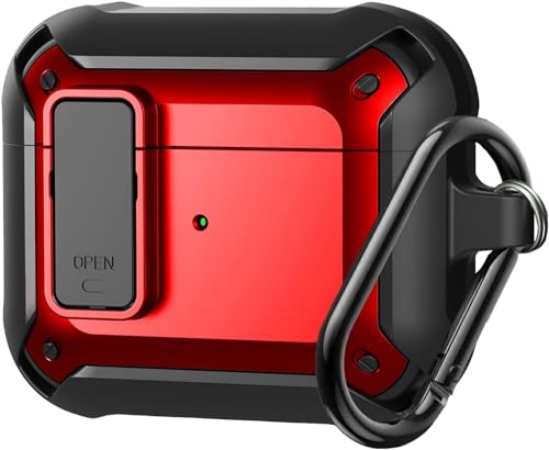 ELMO3EZZ - جراب حماية كامل مزود بقفل أمان مع درع متين لسماعة ابل ايربودز جيل ثالث، جراب متين مضاد للصدمات مع حلقة للرجال من المعز - أسود/ أحمر، بلاستيك