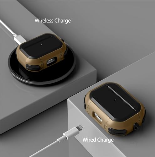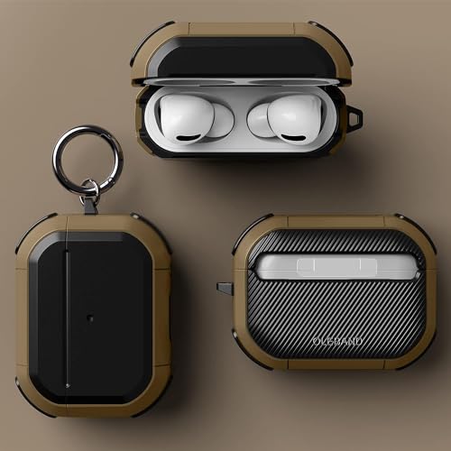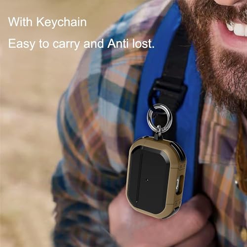 ELMO3EZZ - جراب ايربودز برو 2 - مع سلسلة مفاتيح حماية متين من الدرجة العسكرية لكامل الجسم تصميم مرن ممتص للصدمات حافظة متينة لون بني المعز