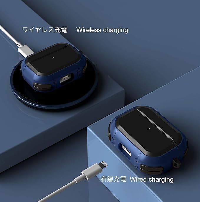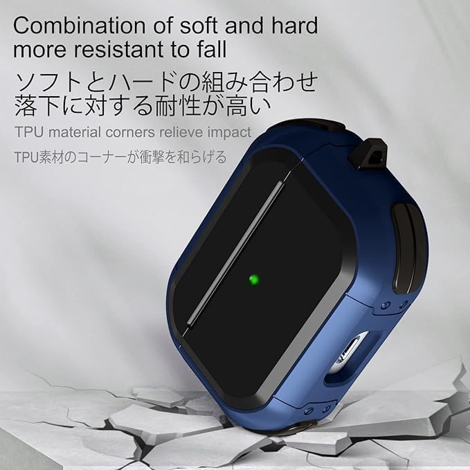 ELMO3EZZ - حافظة لسماعات ايربودز برو 2 مع سلسلة مفاتيح من المعز واقة متينة الدرجة العسكرية لكامل هيكل علبة السماعة متوافق ابل ارمور الجديد ايربود الجيل الثاني 2022 - لون أزرق مواد مختلطة