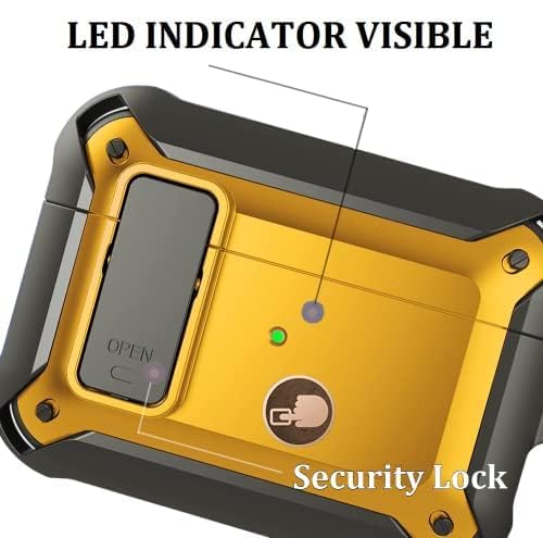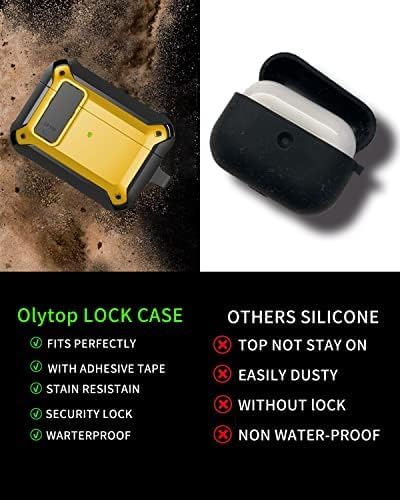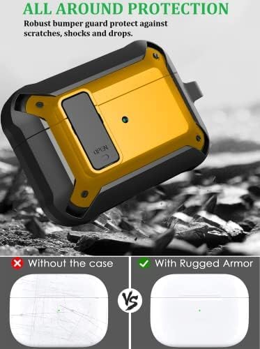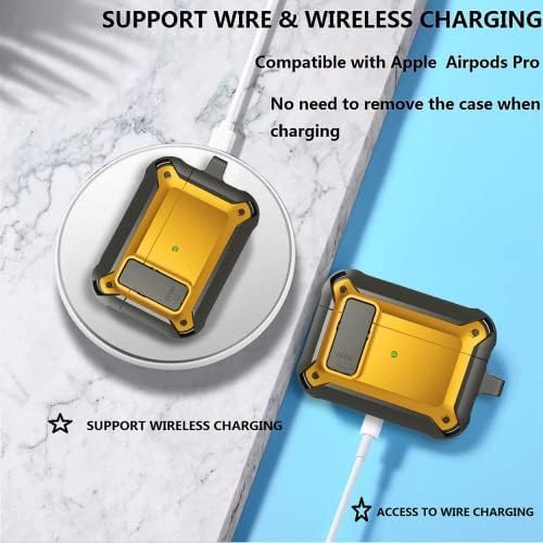 ELMO3EZZ - جراب حماية لسماعات ايربودز برو من المو3 ايز [قفل امن] متين لكامل الجسم للرجال مع حلقة تثبيت رائع مضاد للصدمات ابل 2019 - اسود - اصفر أكريليك
